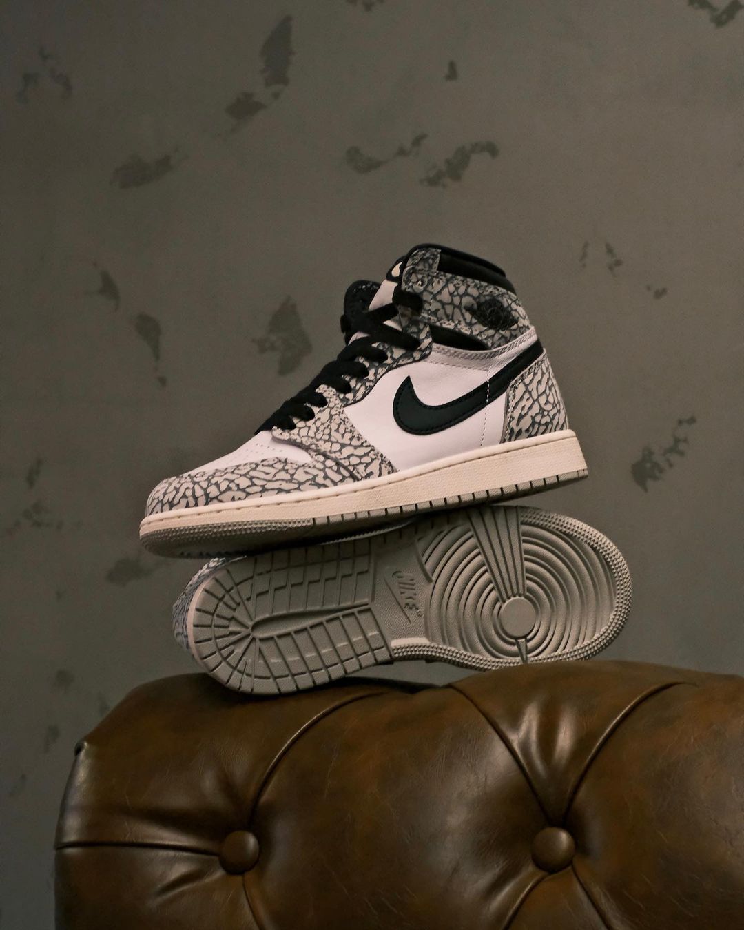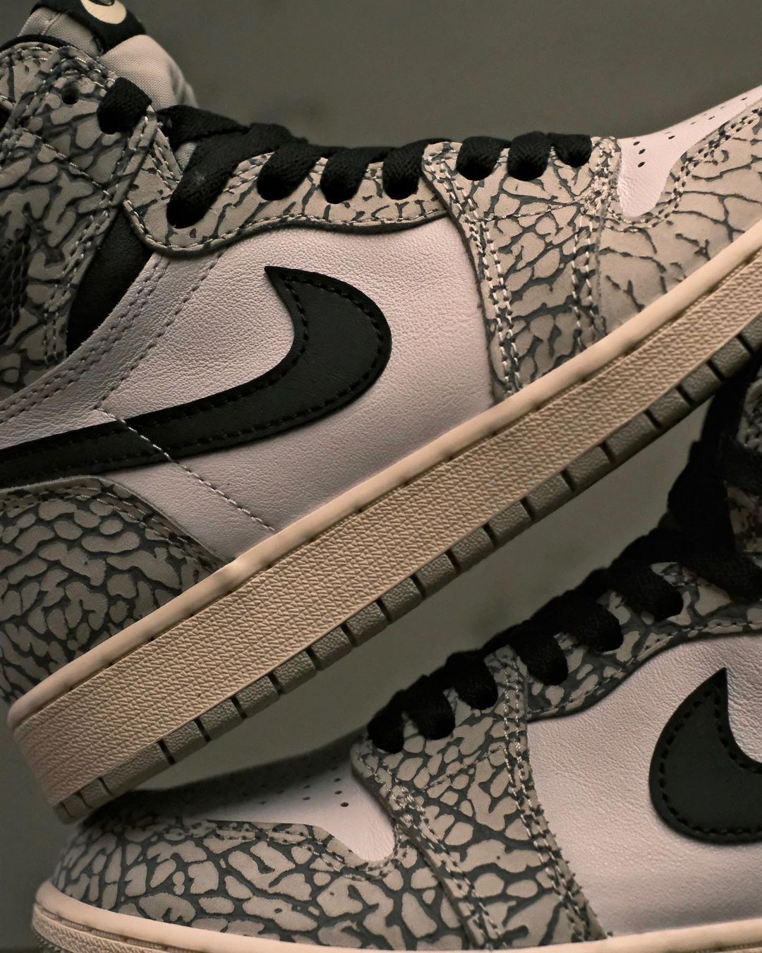 NIKE ジョーダンブランド AIR JORDAN 1(ナイキ エアジョーダン1) HIGHの2023発売モデルの情報がリーク。以前AIR JORDAN 1 HIGH UnSupremeとして発売されたエレファント柄(セメント)を大胆につかったモデルのホワイトカラーバージョンで発売予定。