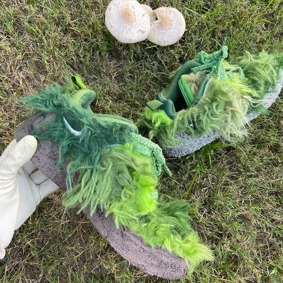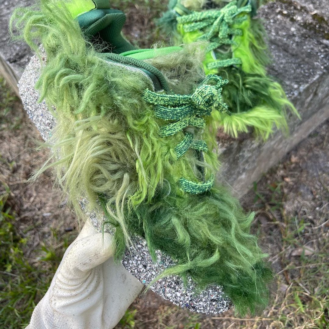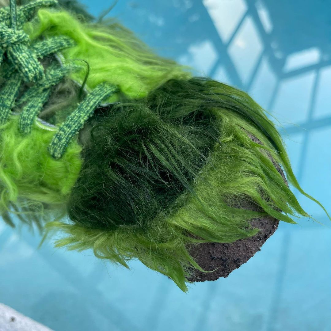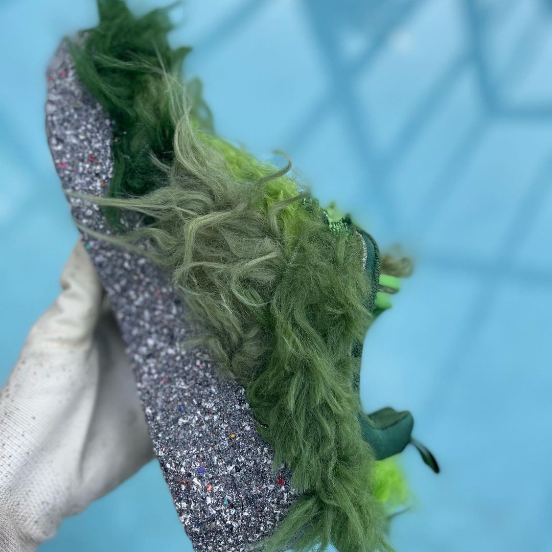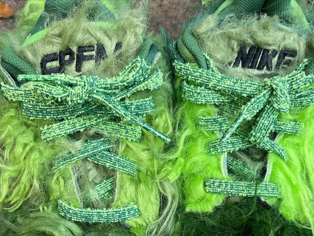 NIKEとCPFM(CACTUS PLANT FLEA MARKET・カクタス プラント フリー マーケット)の新たなコラボレーションスニーカーであるFLEA 1の発売が期待されている中、派生モデルと見られる更に異色のモデルがスタンバイされている模様。アメリカの児童向け絵本いじわるグリンチのクリスマスのGRINCH(グリンチ)をイメージしたとも言われる独特のスニーカーとは思えない雰囲気を醸し出す緑のシャギーヘアーをアッパー全体にあしらったホリデーシーズンむけとされる一足。FLEA 1と同様に、横の陰陽パッチ、右のシュータンにはCPFMの刺繍、インソールにはクラシックヒートマップがデザインされています。トング部分の収納や、巾着袋が付属するようです。
