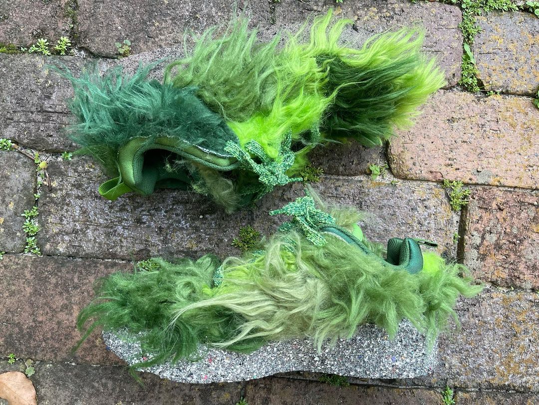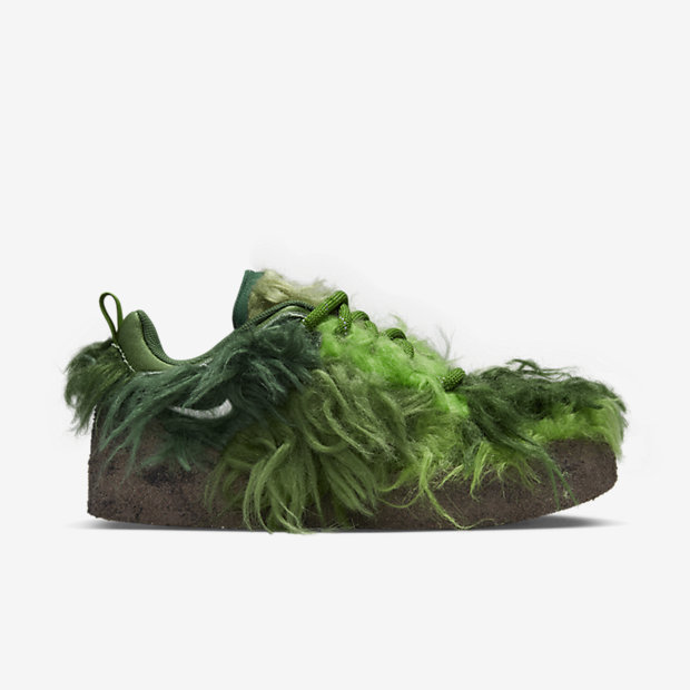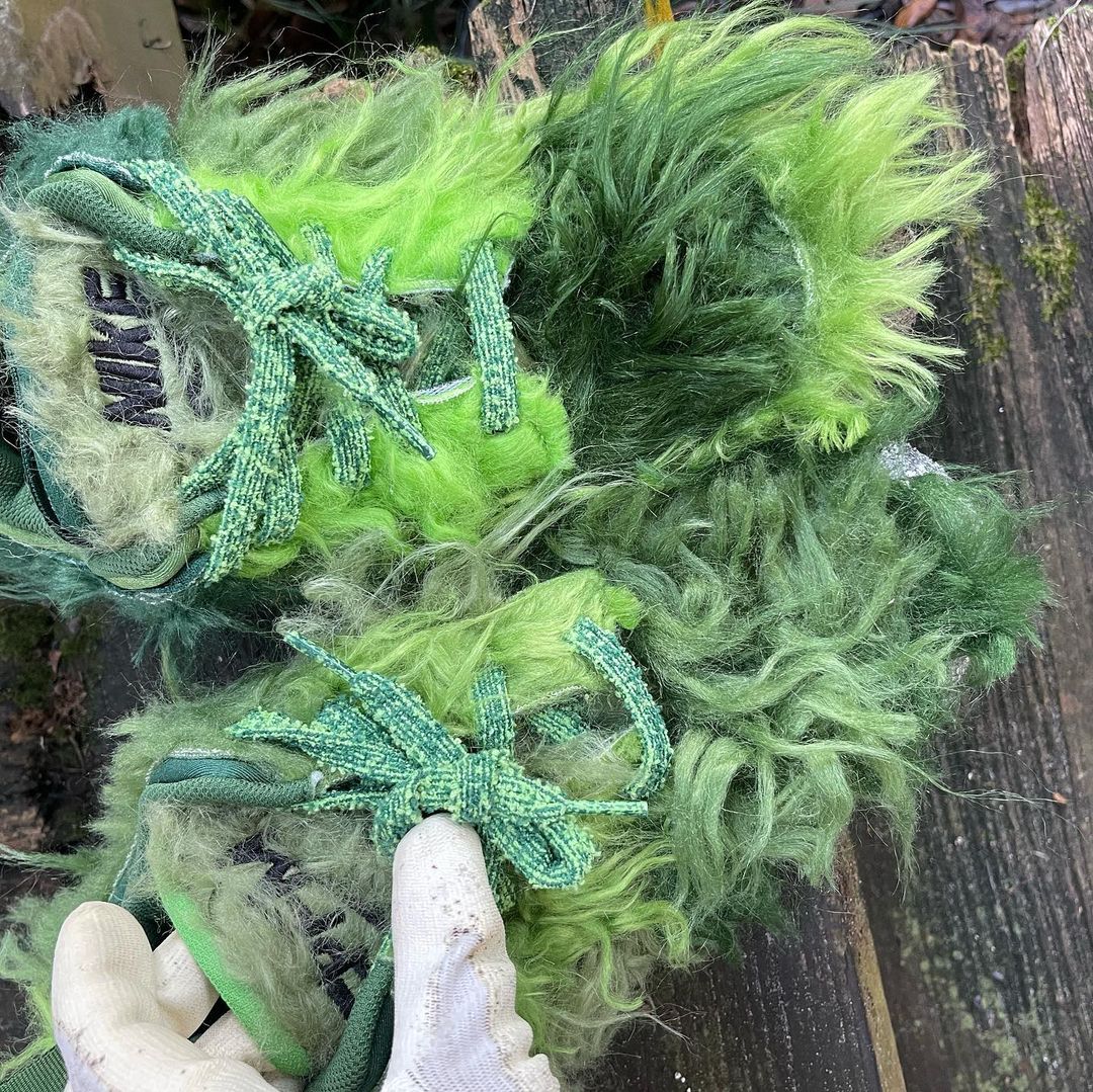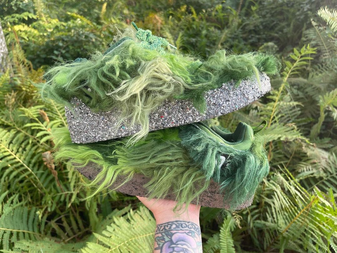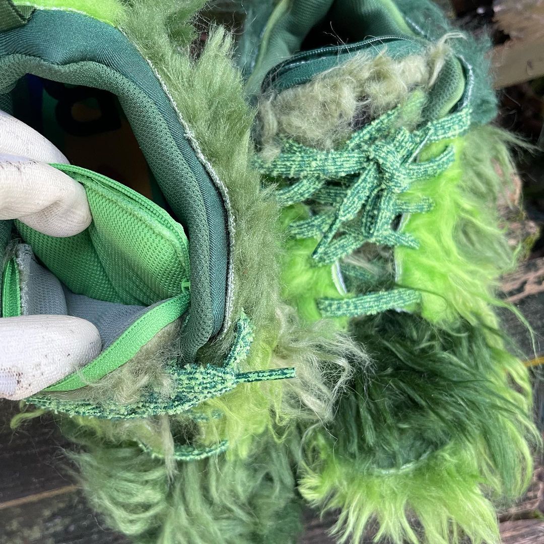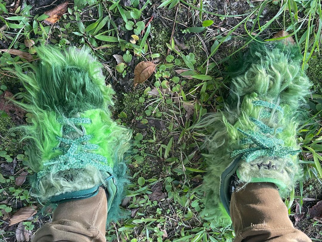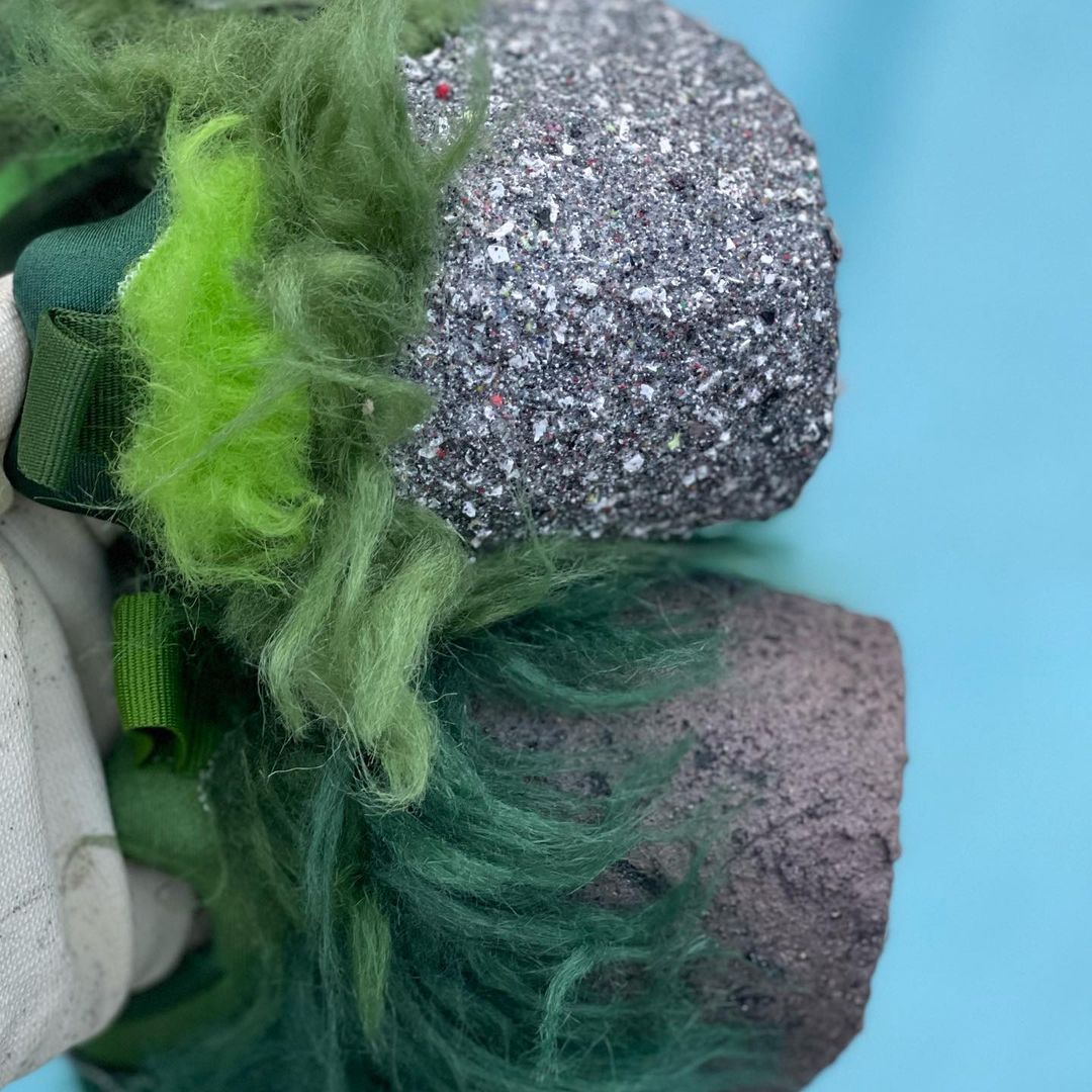 NIKEとCPFM(CACTUS PLANT FLEA MARKET・カクタス プラント フリー マーケット)の新たなコラボレーションスニーカーであるFLEA 1の発売が期待されている中、派生モデルと見られる更に異色のモデルがスタンバイされている模様。アメリカの児童向け絵本いじわるグリンチのクリスマスのGRINCH(グリンチ)をイメージしたとも言われる独特のスニーカーとは思えない雰囲気を醸し出す緑のシャギーヘアーをアッパー全体にあしらったホリデーシーズンむけとされる一足。FLEA 1と同様に、横の陰陽パッチ、右のシュータンにはCPFMの刺繍、インソールにはクラシックヒートマップがデザインされています。トング部分の収納や、巾着袋が付属するようです。