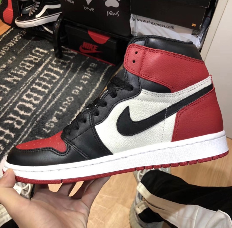 air jordan 1 bred toe 初期のリーク時の画像