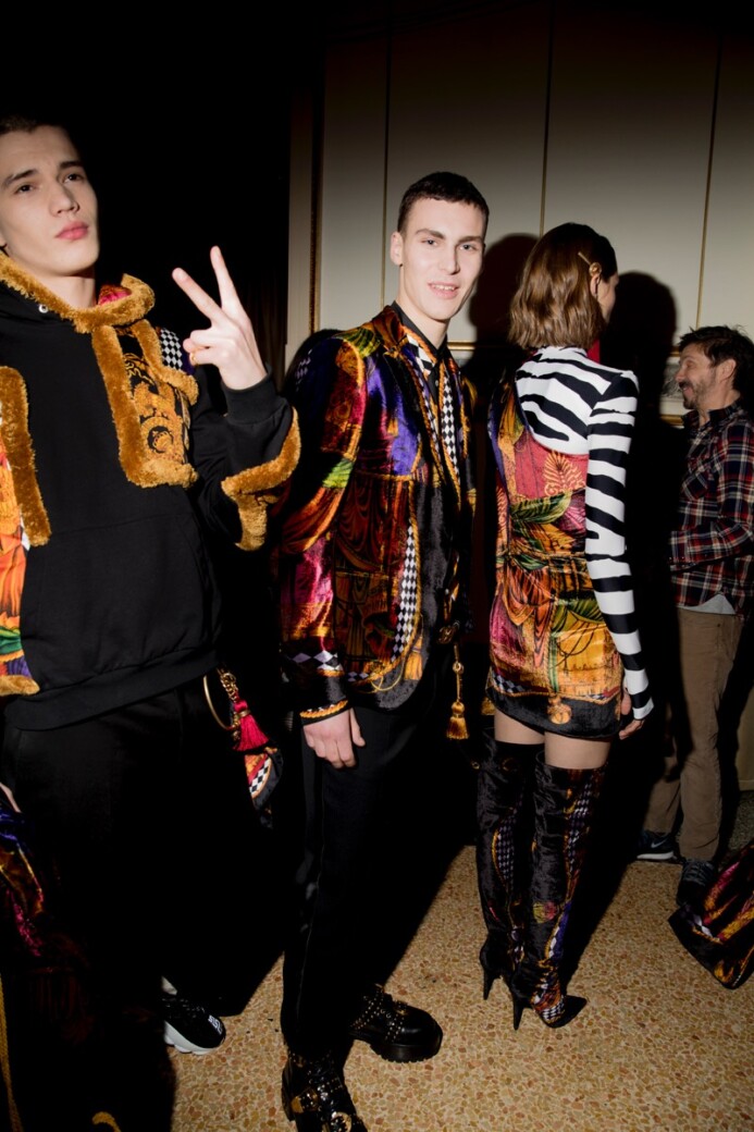 ヴェルサーチの2018秋冬コレクションがミラノで開催。コレクションのルックとバックヤードの様子が公開。