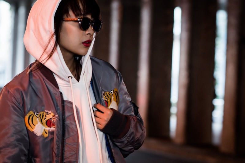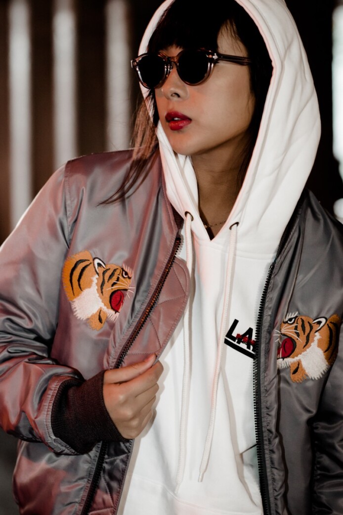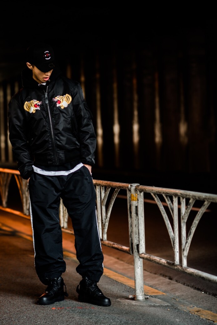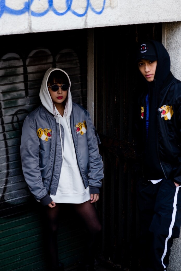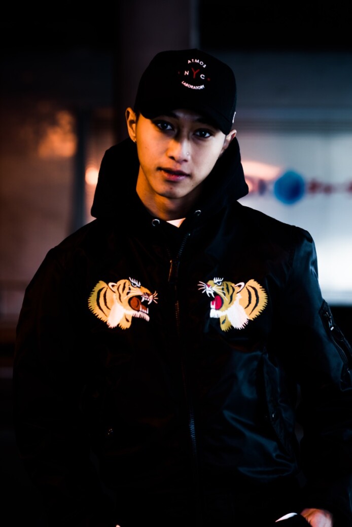 同コラボの春仕様のスカジャンとMA-1をミックスした”SUKA MA-1 JACKET”は中綿無しのBLUEライニングが特徴で、両胸にはタイガーの刺繍が入り後ろ身頃にはATMOS LAB を象徴するBIG A LOGOがプリントされており、DRAGONの刺繍を大胆に施したデザインとなっています。