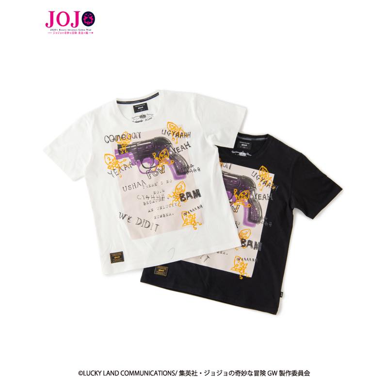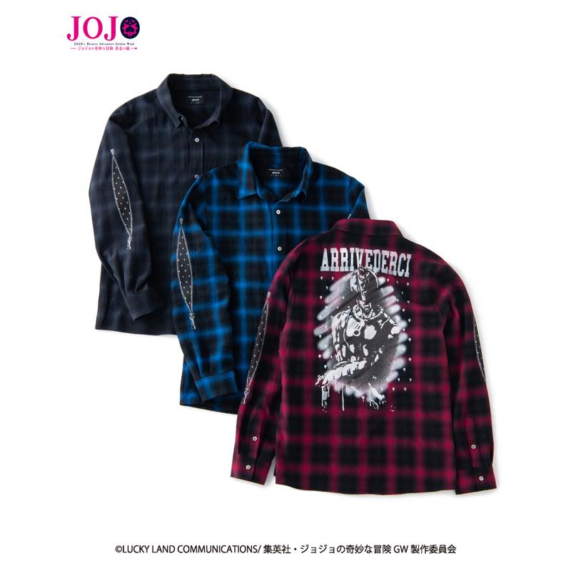 同コラボレーションラインでは他にもブチャラティチームの各メンバーを描いたTシャツ、ブローノ・ブチャラティのスタンドをモチーフにしたチェックシャツ、glamb で人気のサルエルデニムなど、『ジョジョの奇妙な冒険 黄金の風』のエッセンスをストリートウェアに閉じ込めたアイテムが展開。